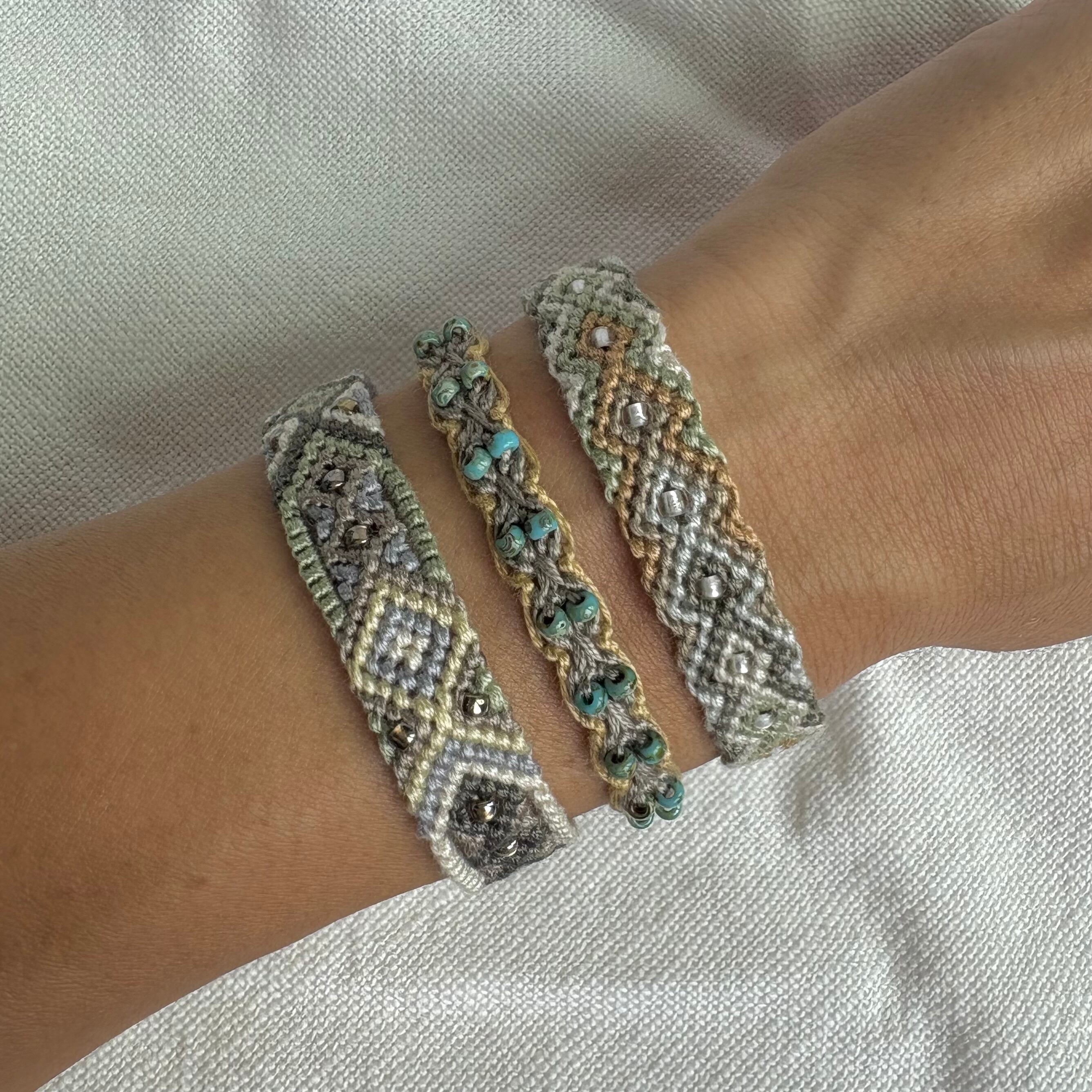 #ミサンガ #オーダー #ボヘミアン #ネイティヴ #エスニック #ネイティブ #オルテガ #アクセント #ヌードベージュ #ビーズ #フレンドシップブレスレット #幅広 #ワイドブレスレット #重ねづけ #サーフ #金属アレルギー対応