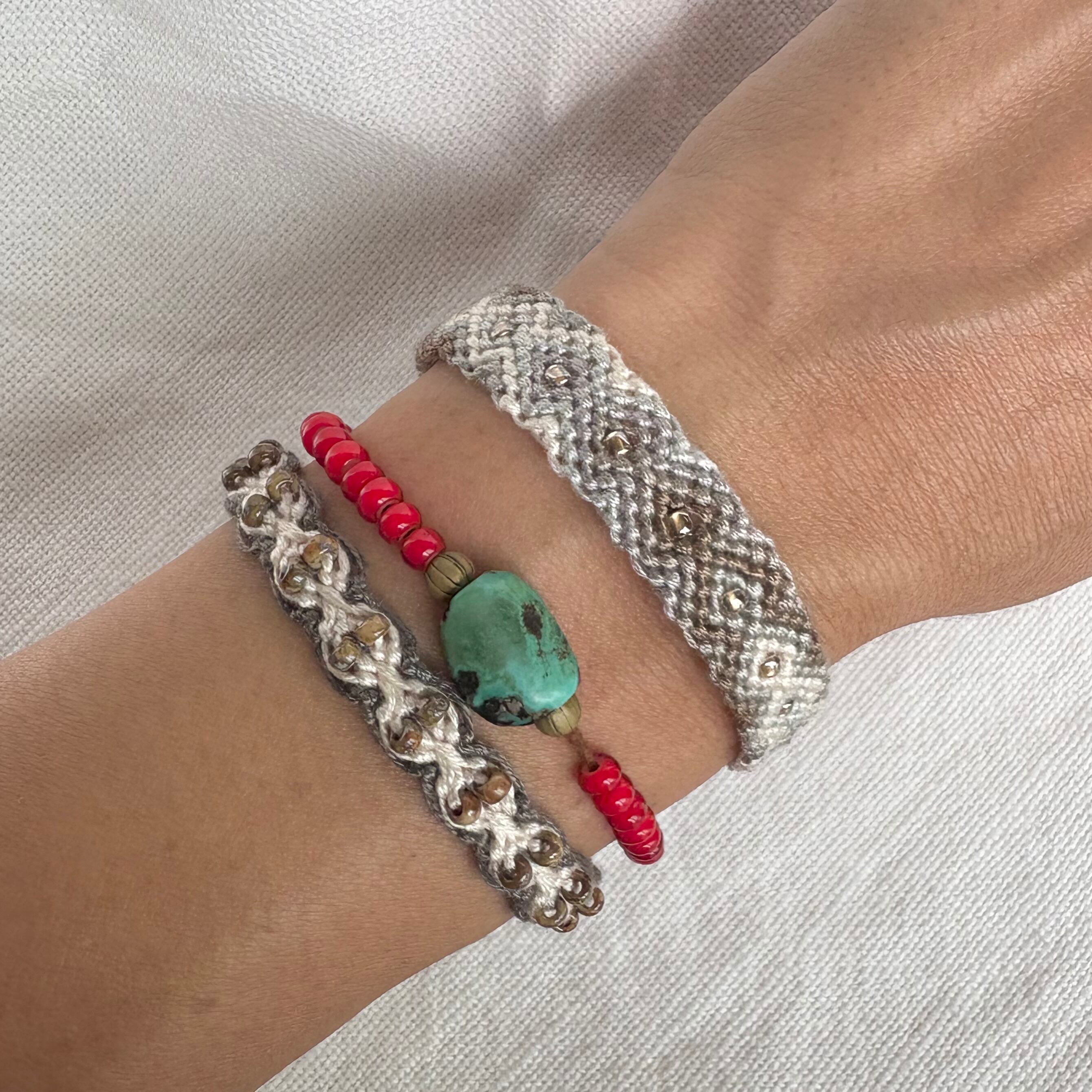 #ミサンガ #オーダー #ボヘミアン #ネイティヴ #エスニック #ネイティブ #オルテガ #アクセント #ペールトーン #ビーズ #フレンドシップブレスレット #幅広 #ワイドブレスレット #重ねづけ #サーフ #金属アレルギー対応
