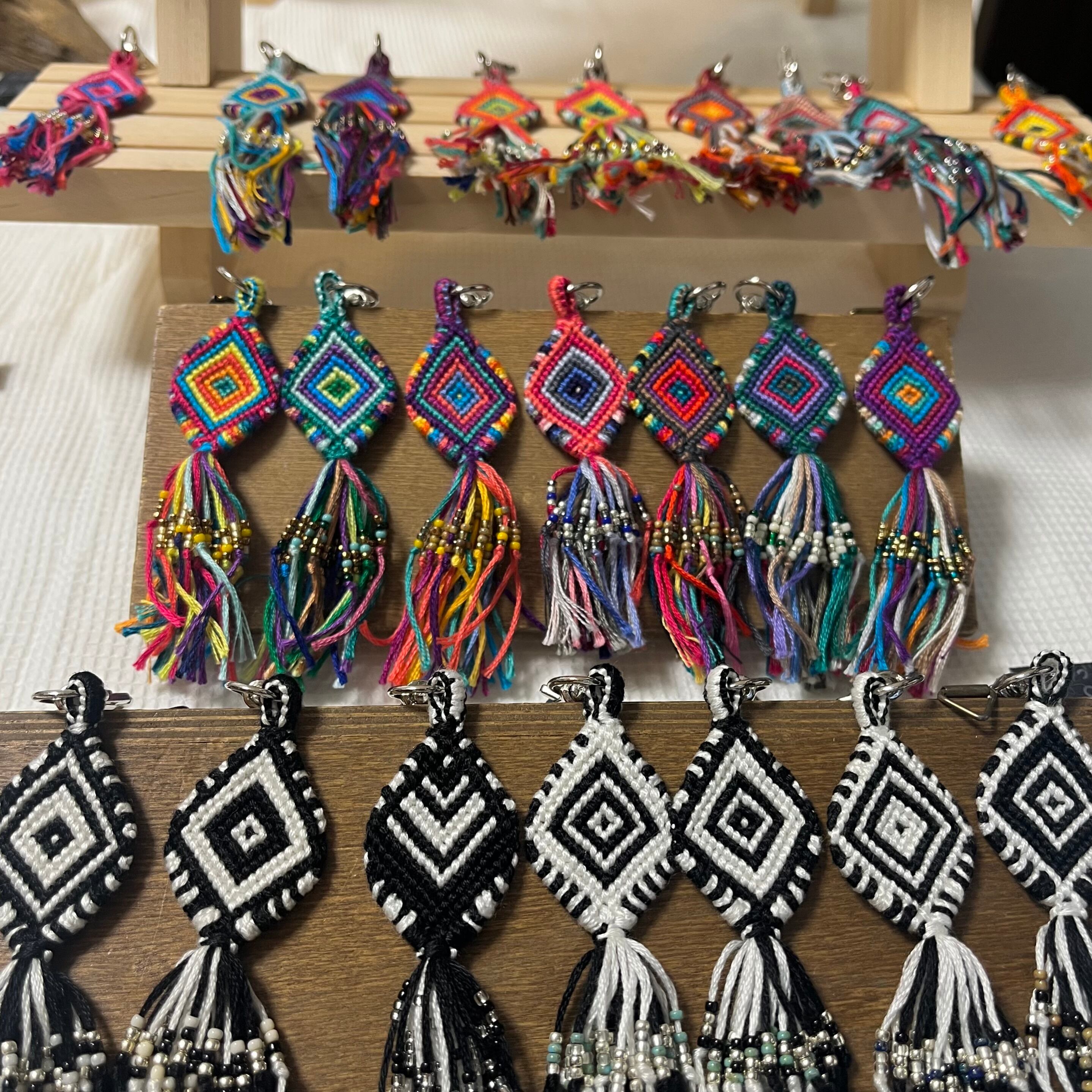 #ミサンガ #キーホルダー #チャーム #キーチャーム #バッグチャーム #ボヘミアン #エスニック #ビーズ #ネイティブ #フリンジ #サーフ #ターコイズカラー #ボルドー #ストラップ