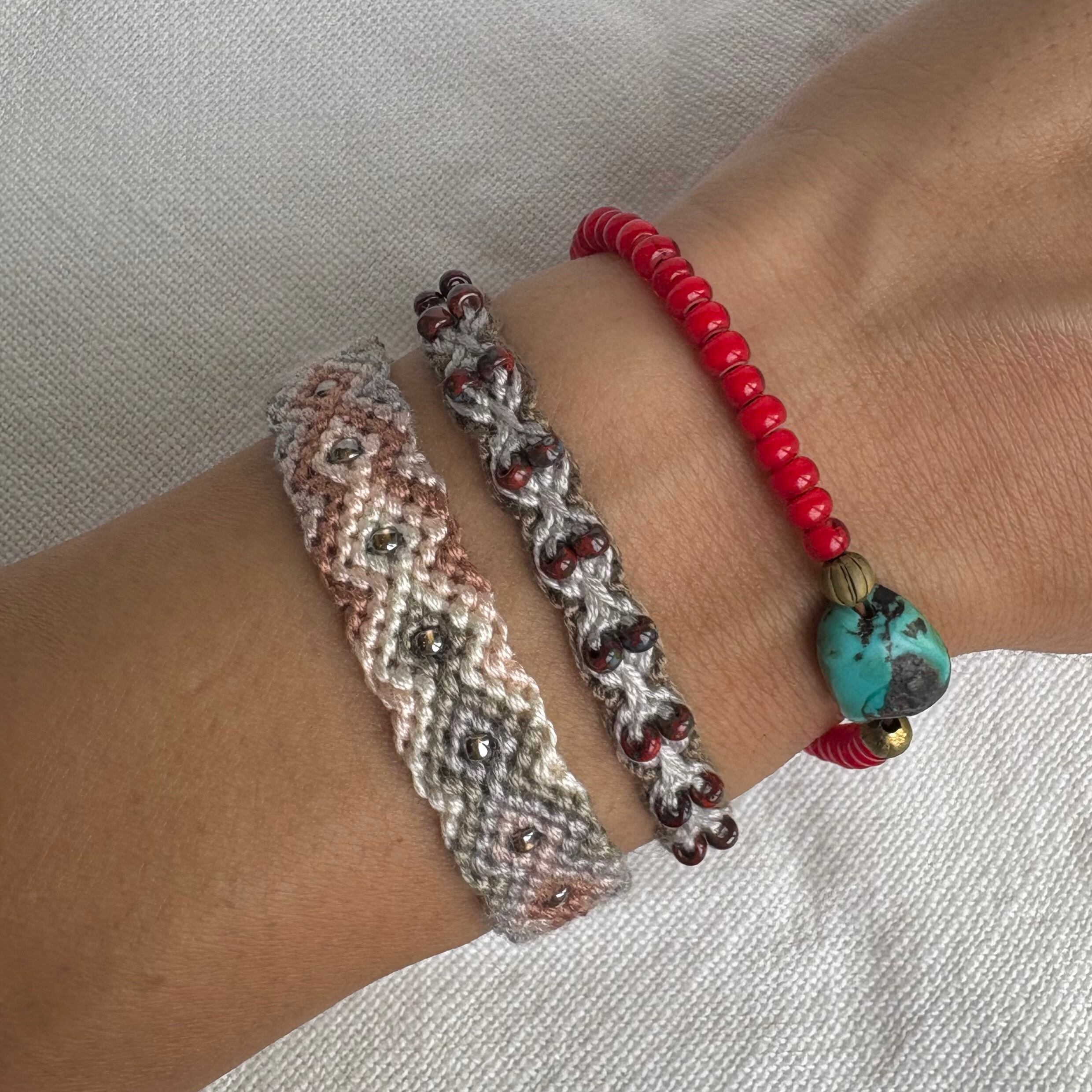 #ミサンガ #オーダー #ボヘミアン #ネイティヴ #エスニック #ネイティブ #オルテガ #アクセント #ターコイズカラー #ビーズ #フレンドシップブレスレット #幅広 #ワイドブレスレット #重ねづけ #サーフ #金属アレルギー対応